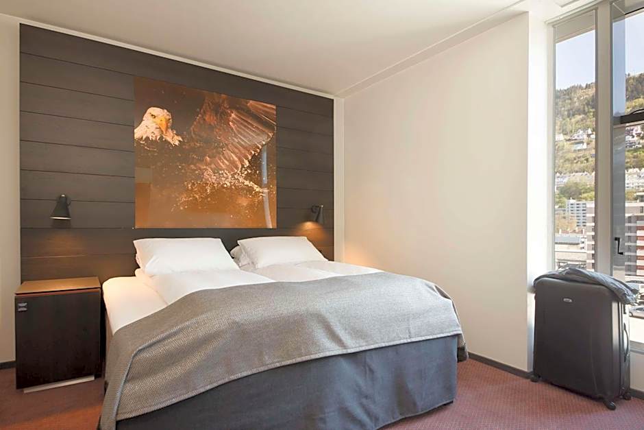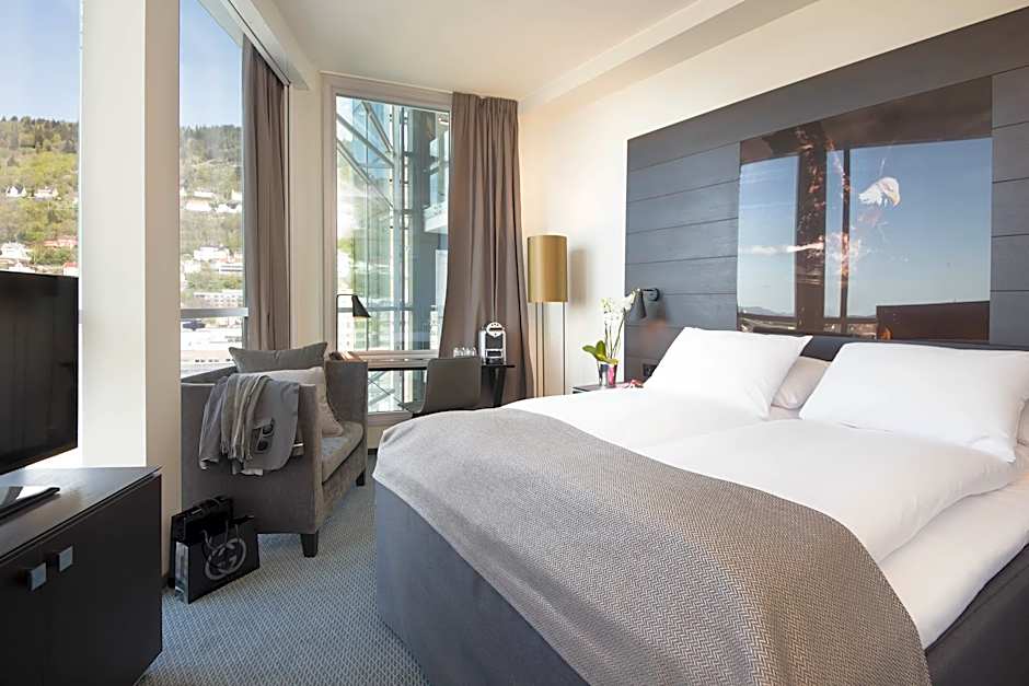 This room features a flat-screen TV, refrigerator, and tea/coffee facilities. Most rooms offer views over Bergen city center.